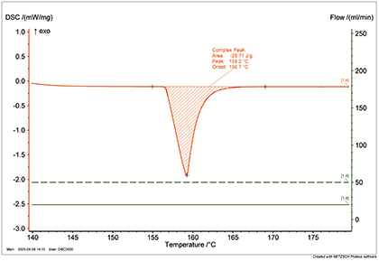 NETZSCH製示差走査熱量計 DSC3500Sirius(熱流束型)でのインジウムの測定例