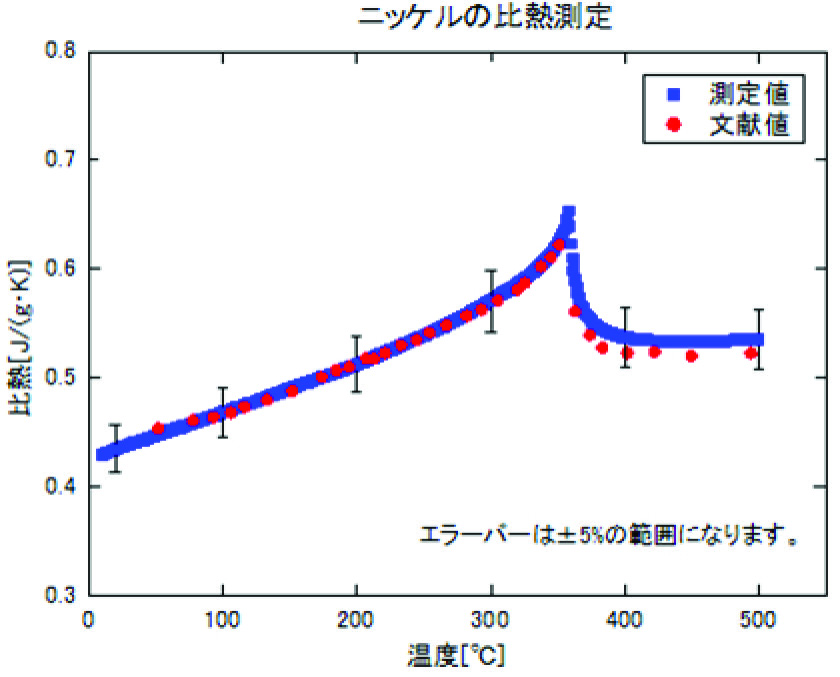 PerkinElmer製示差走査熱量計 DSC-7(入力補償型)でのニッケルの比熱